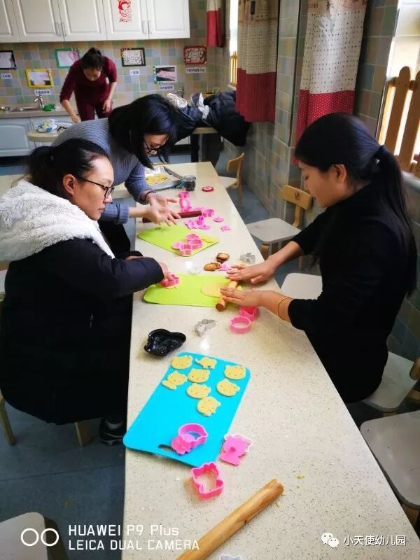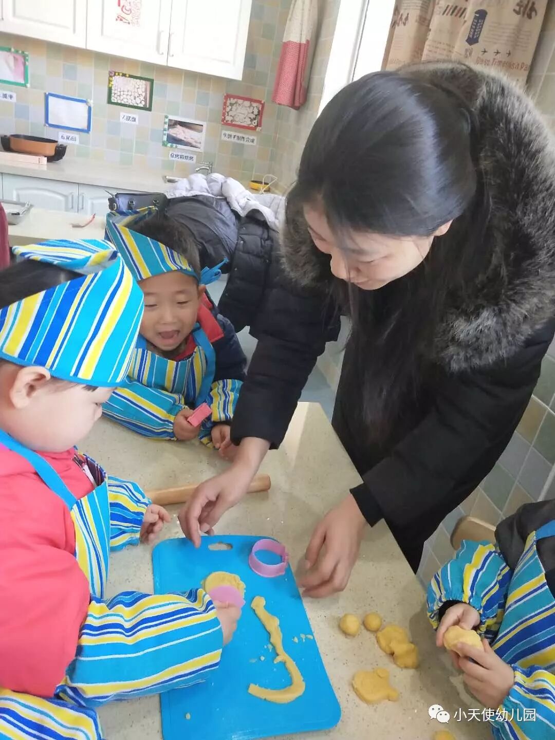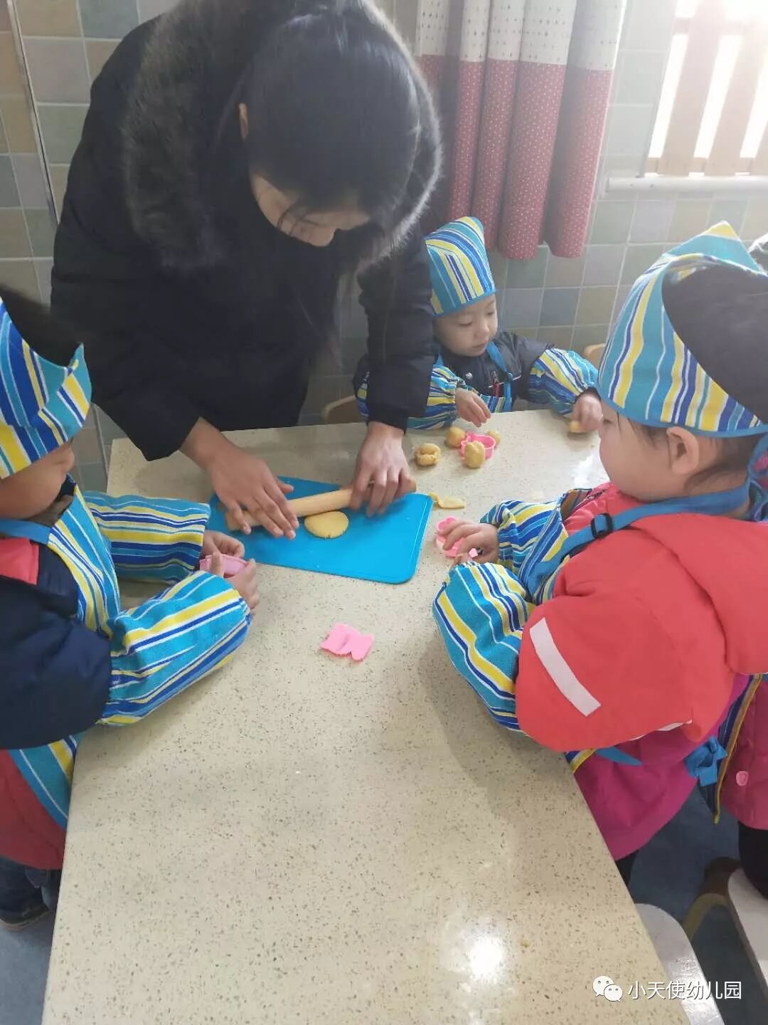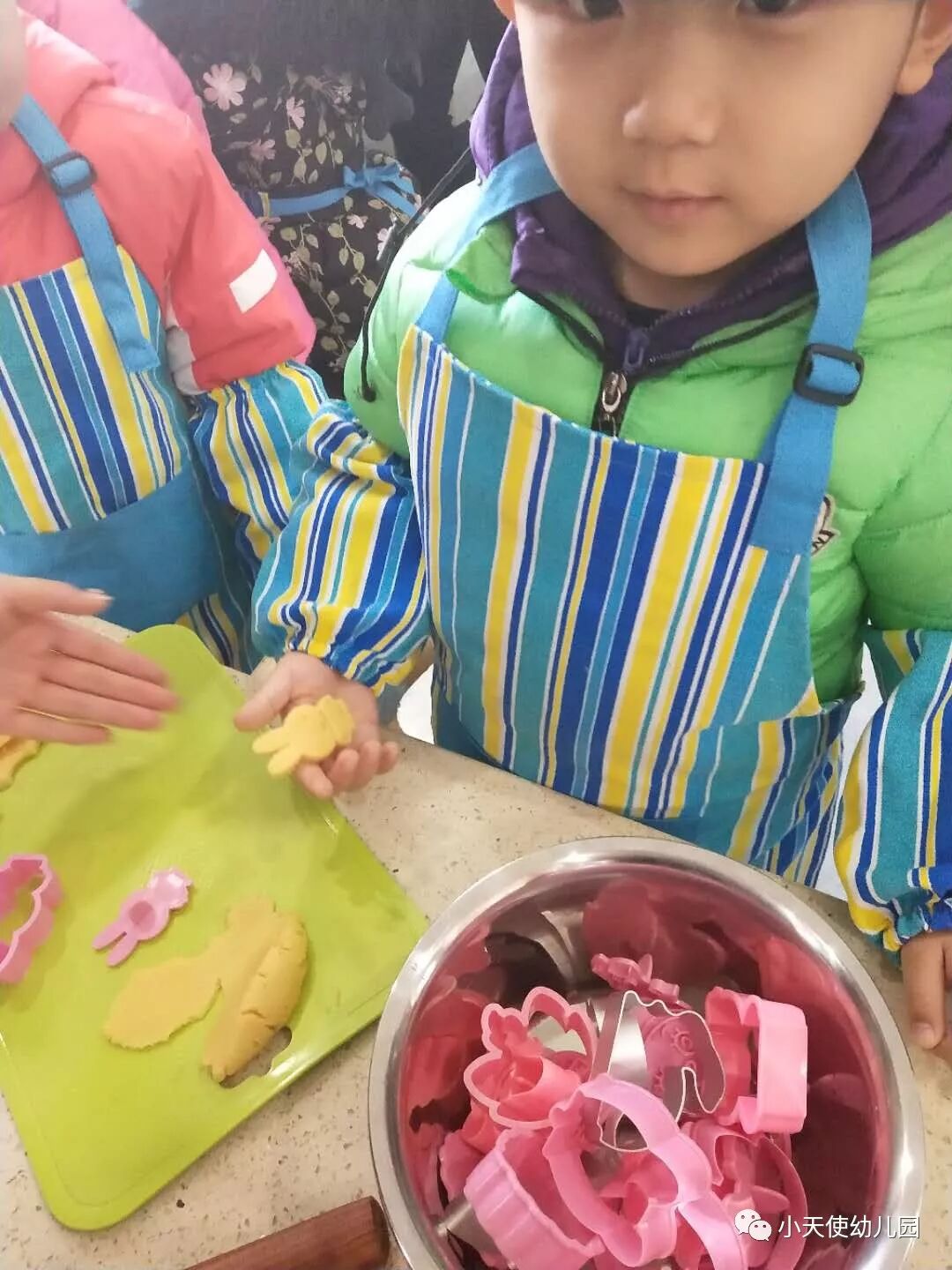 小三班末末妈妈、蛋蛋妈妈、安安妈妈、萌萌妈妈带领小朋友们来到“魔法厨房”制作饼干!