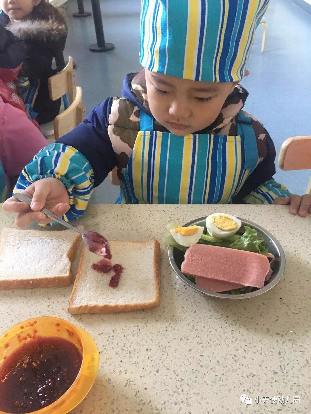 小二班郑明泽家长带着小朋友们来到了“魔法厨房"制作美味的三明治!