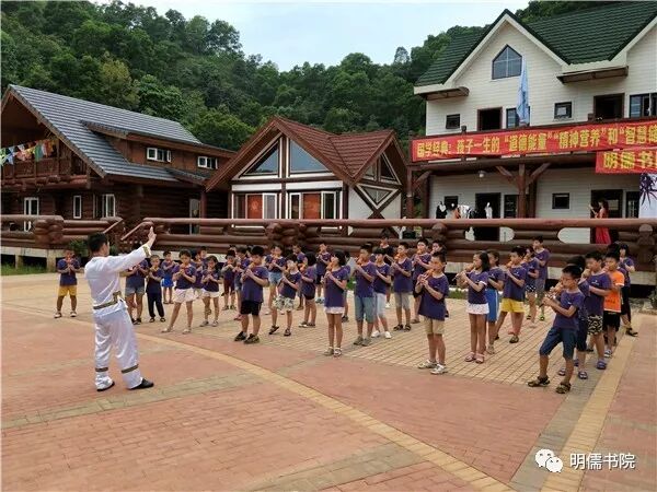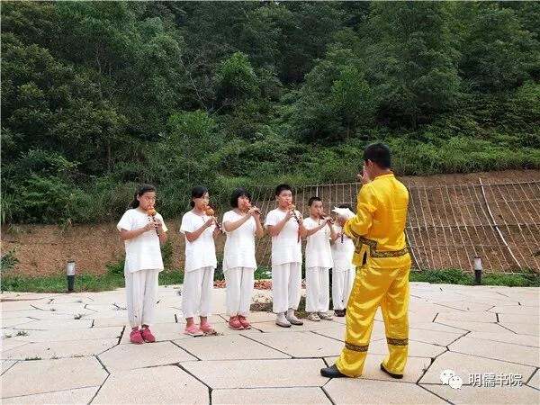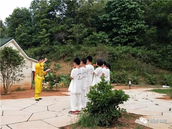 基地的早晨,孩子们一边听着讲解,一边认真练习。