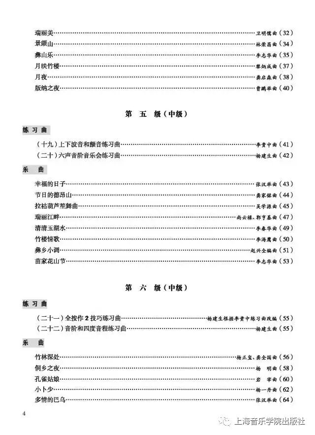 为上海音乐学院社会艺术水平考级曲集系列中的葫芦丝、巴乌考级专用书籍,2017年可以与旧版同时使用。2018年开始正式用此版。本考级曲集为1级至10级;每一级必考乐曲为两首,以及一至二首相应级别的练习曲。所选曲目都是具有代表性的,如《金孔雀轻轻跳》《婚誓》《孔雀姑娘》等。