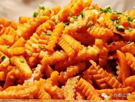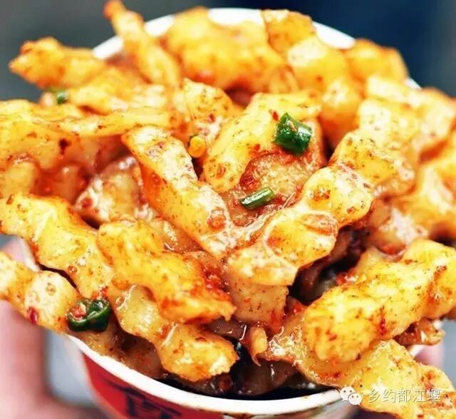 在都江堰土豆花的名气非常之大,只要是都江堰人都知道,街头巷尾都能找到土豆花的摊摊,现炸现卖,多种口味任你挑选,味道巴适得很!什么火锅呀、冒菜呀、干锅呀等等都离不开这个配菜,虽然没那么高大上,但是味道自然是值得点赞的,均价5元。![]()