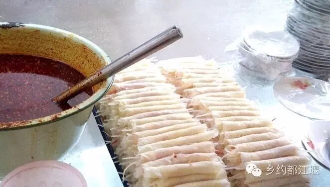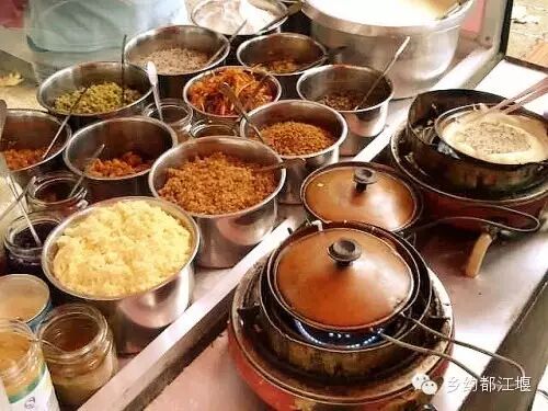 豆花就是我们说的豆腐脑,在都江堰是很传统的小吃啦,可分为甜、咸两种吃法。搭配辣椒油、花椒面等作料,再放点葱花,最后放上花生米或者酥黄豆,滑嫩柔软,入口即化,鲜咸微辣,那感觉简直莫摆了!!!均价5元。![]()