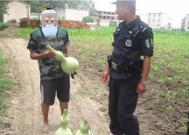 ➤ 近日,安徽阜阳3男孩在家看动画《葫芦娃》,一时兴起走到村里一处葫芦地,顺手偷了几个葫芦,“扮起”葫芦娃。