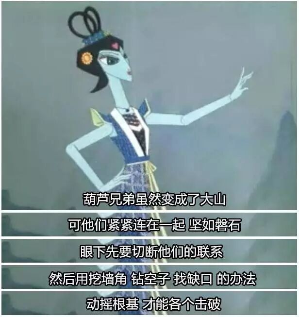 最近电视台又在反复播放上海美术电影制片厂的《葫芦小金刚》,陪着小盆友认真看了好几遍,感觉以前自己真是too young,没能理解编剧的深意。