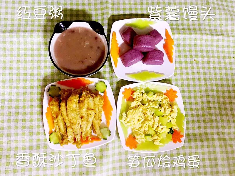 早餐:炒鸡蛋 豆腐卷 八宝粥