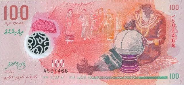 今天介绍的是马尔代夫100拉菲亚塑料钞正面图案中的传统编织工艺及服饰,请先欣赏钞票图。