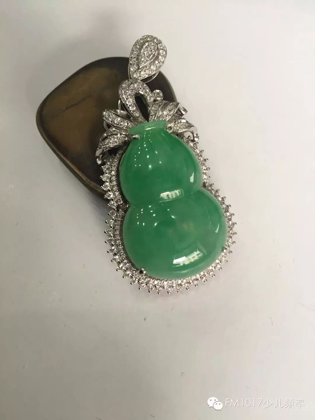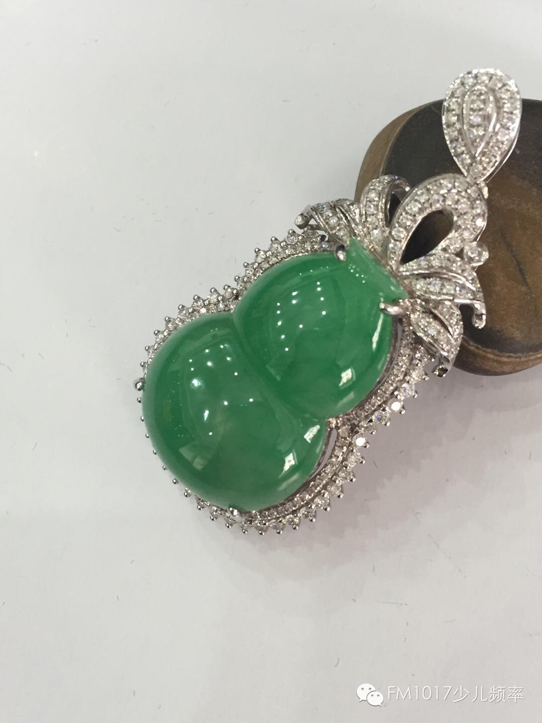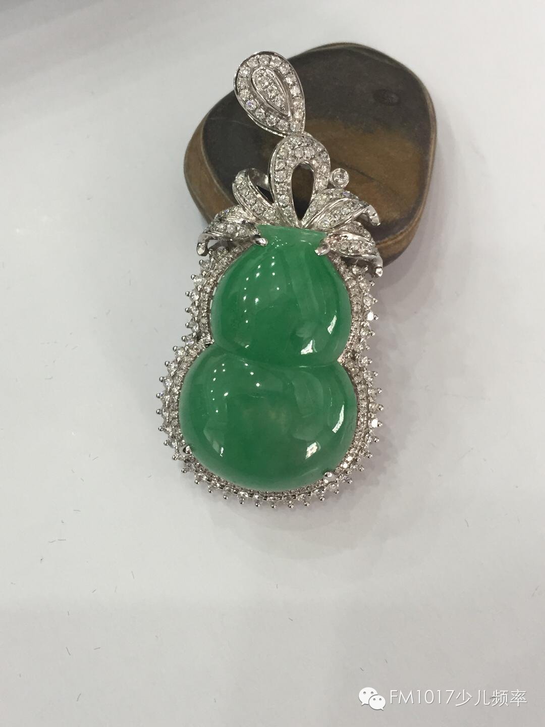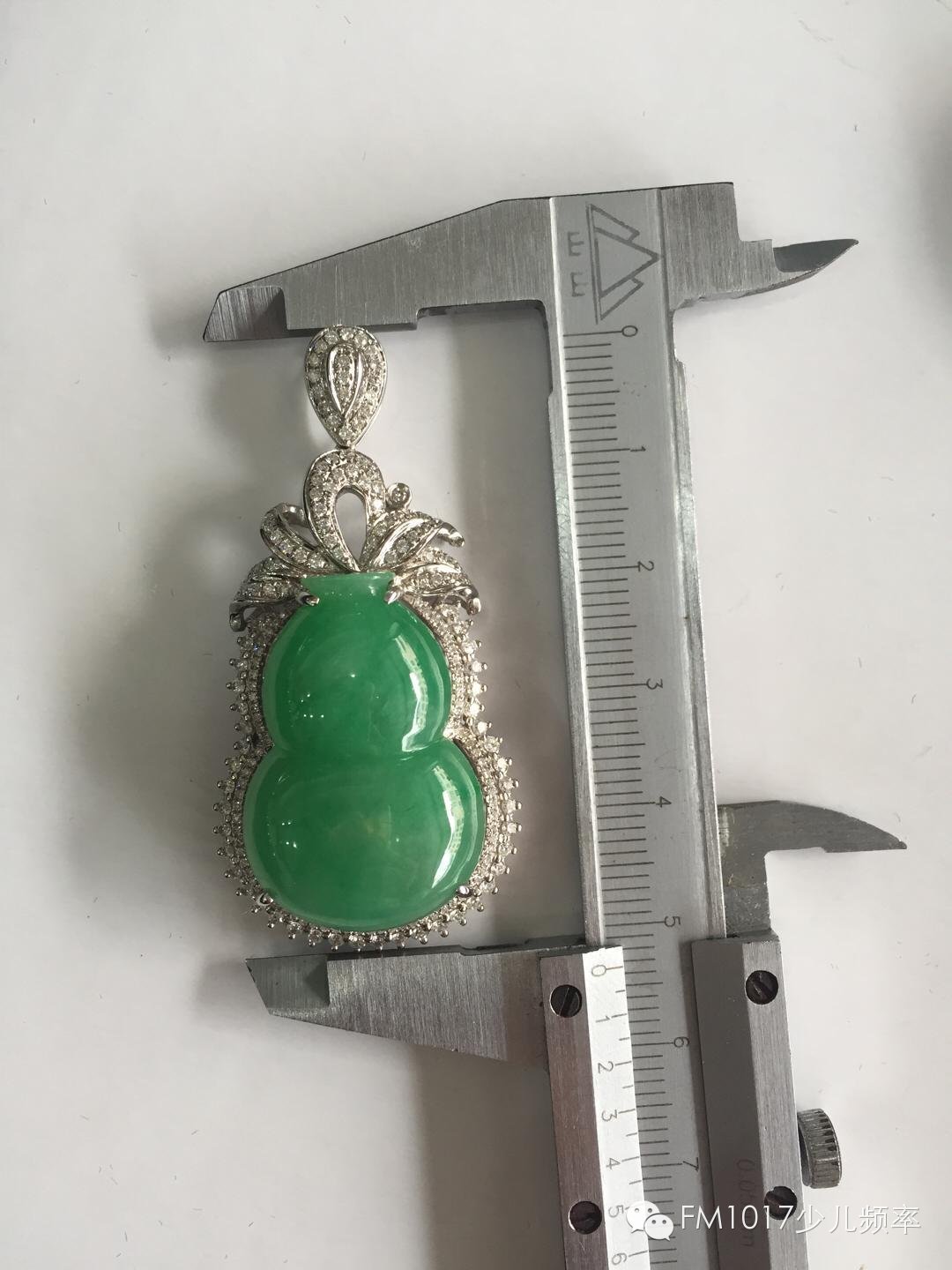 【绿葫芦】?满绿冰种 色泽鲜艳 水润冰透 玉质清晰 完美无瑕 18k真金钻 性价比高 尺寸如图 喜欢联系??