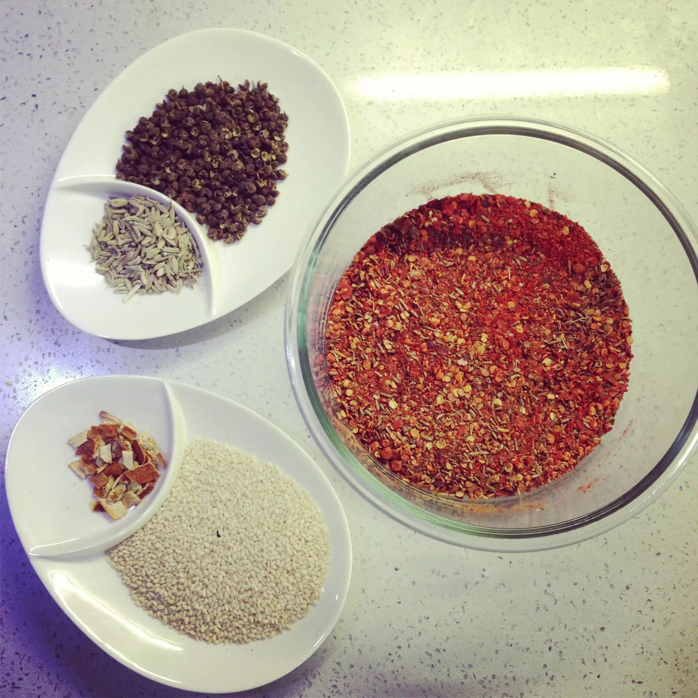红油辣子,好学好做,只需要五样原料:干辣椒面、小茴香、川北麻椒、广东老陈皮、白芝麻(真的不要再问我上哪里买这些东西了,如果你连这些东西都不知道去哪里买,还是别学做饭了,现在很多人已经懒得恨不得我如果不买好原料提上门再手把手教丫做,就要来骂我教得不详细,我勒个x!)