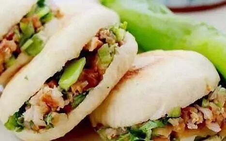 肉夹馍是西安最具代表的美食。它的英文名叫Chinese hamburger(中国汉堡)。"肉夹馍"的叫法是古汉语的省略句式,其意为"肉夹于馍"。