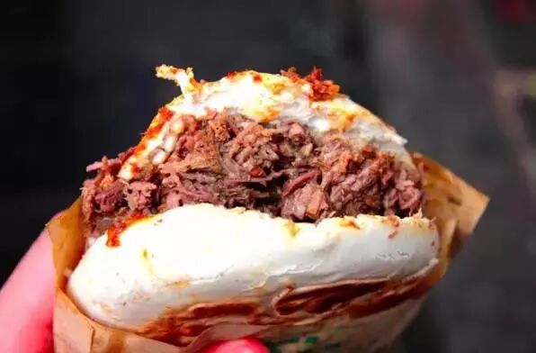 肉夹馍是陕西著名小吃,馍外观焦黄,条纹清晰,内部呈层状,饼体发胀,皮酥里嫩,火功到家,食用时温度以烫手为佳,且老潼关肉夹馍是热馍夹凉肉,饼酥肉香,爽而不腻。