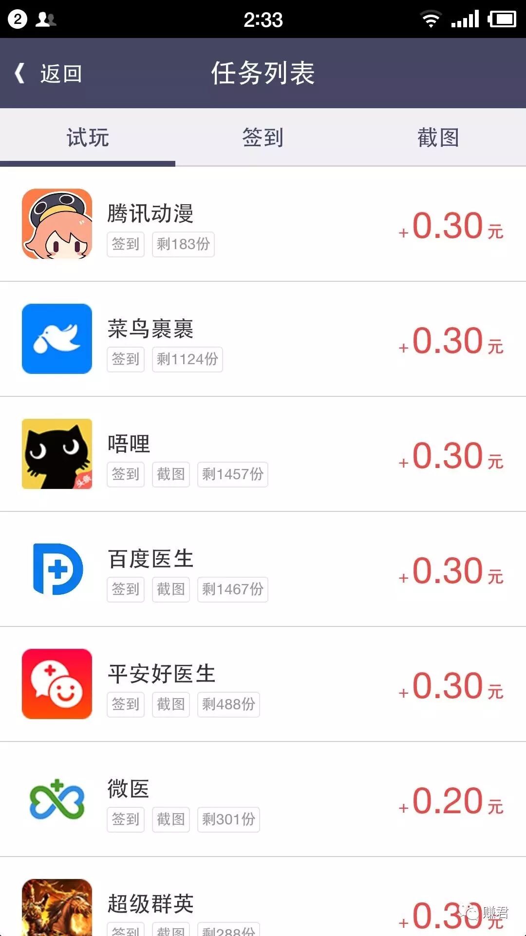 赚钱App试玩平台做过的用户都知道,平台任务的发放基本都在下午3-5点,这也是平台任务量的高峰期,错过了就没有任务可做。多数平台都有任务预告,可根据预告时间安排。之前小编出过一篇《苹果手机赚钱App多平台操作技巧干货 月入好几百块的方法!》想入门的朋友可以参考。