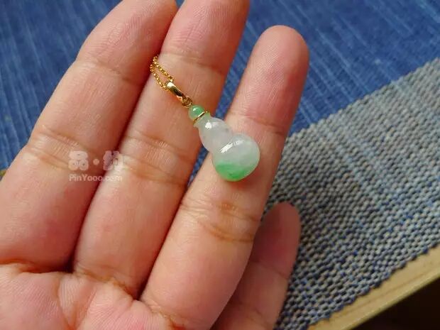 白的非常白,绿的非常阳,虽小,上身效果确实极好极好的,而且器型很美,就是传说中的那种宝葫芦来着