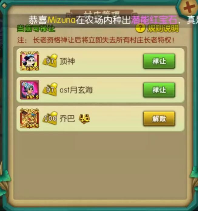 本次更新我们将推出村长禅让功能,新的荣耀将由新的村长来带领谱写!