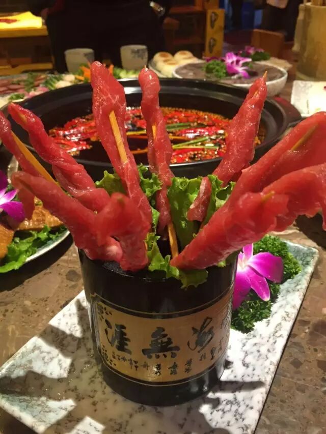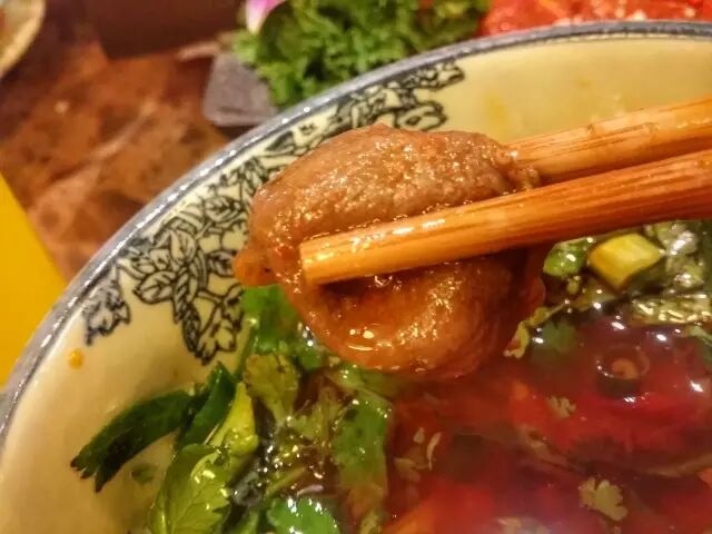 牛肉在红油中浸泡过后,肉质细嫩不老,每一个细胞都满含锅底的热情,一口下去麻辣鲜烫在口腔头弥漫开来,销魂的小胖墩手一抖~