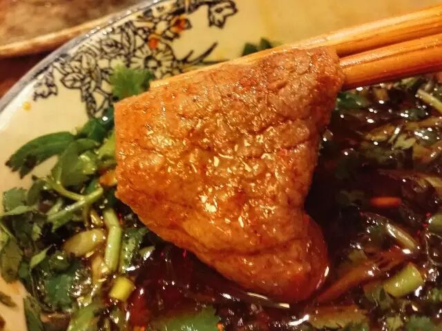 他家的牛舌细嫩化渣QQ弹弹的,吸满了锅底的香辣,裹上一层干碟,简直就是完美!
