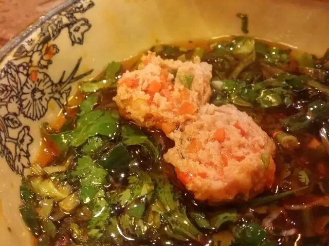 外表看起来五颜六色,乖乖哒~其实内心相当狂热哦!野山椒+胡萝卜+青椒取代了传统的香菜,和猪肉馅儿混合搅成弹性十足的肉丸子,小伙伴说,辣中带着蔬菜的清爽,弹嫩鲜辣!!【没吃到伐开心】