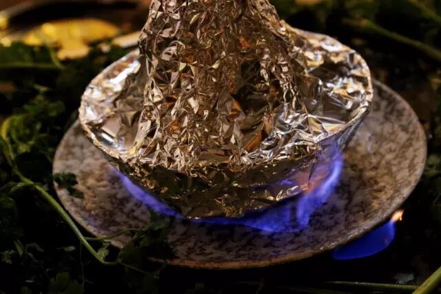 这个葫芦头卖的是啥子药呢?淋上酒精点上火,蓝色的火焰悠悠的包围了小鲜肉,服务员说7秒之后就可以一睹小鲜肉的真容了!