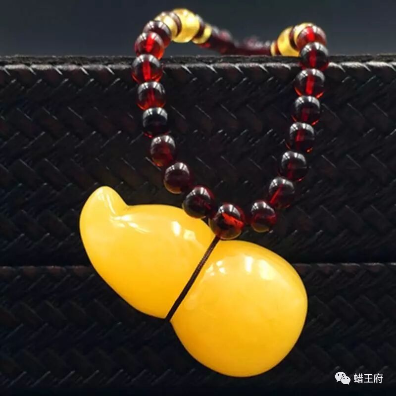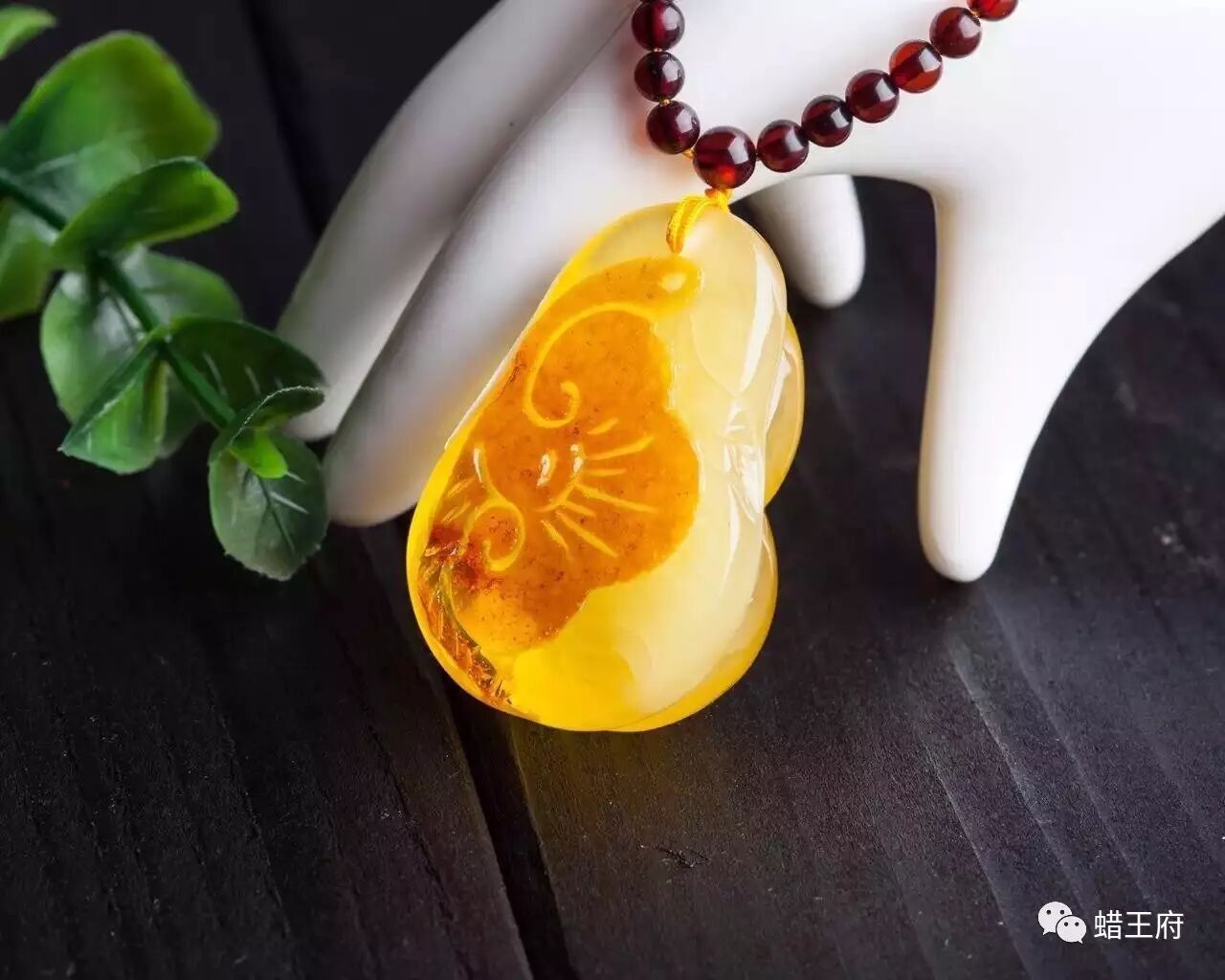 福禄——琥珀葫芦谐音琥珀福禄,福即福气、福星、赐福、幸福;禄即禄位、禄星,古时指高官厚禄,现多指事业财运旺盛。琥珀葫芦寓意福禄双全,护佑人们幸福吉祥,加官进爵,财源滚滚。