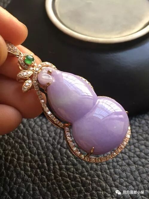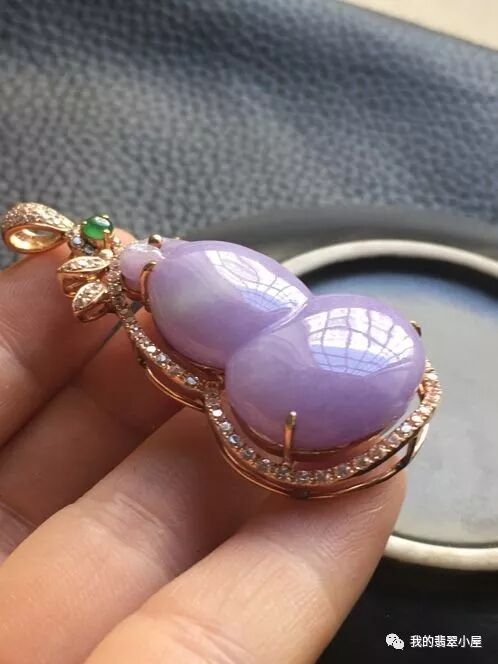 ![糯种紫罗兰翡翠18K玫瑰金翡翠葫芦大吊坠 细腻 颜色见光不死 富贵大方]()