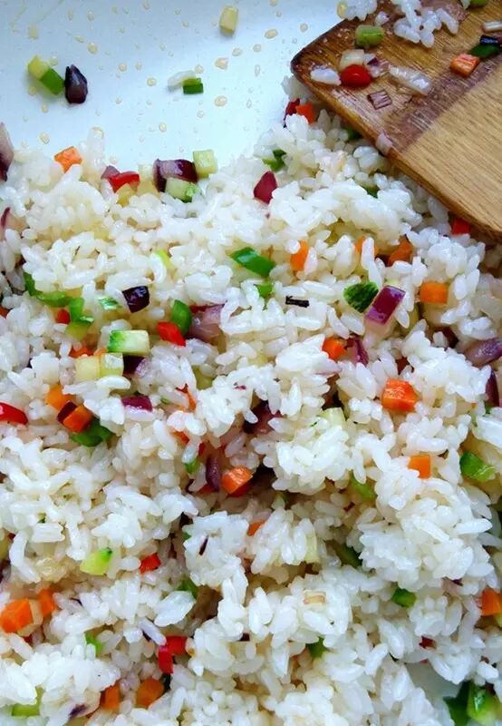 2、炒米饭时加盐要适量,要考虑到不管是蒜茸辣椒还是韩式辣酱都有一定咸度。