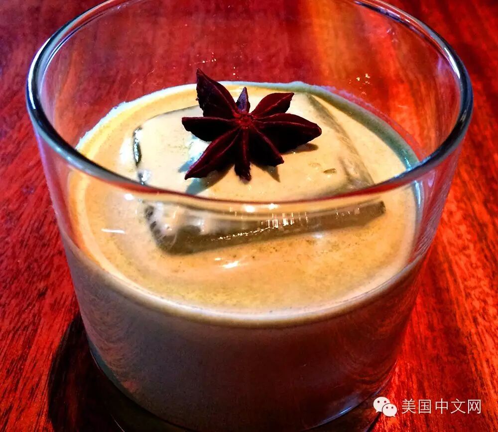 这里的鸡尾酒搭配也很有创意,大块的方冰上放上一个八角