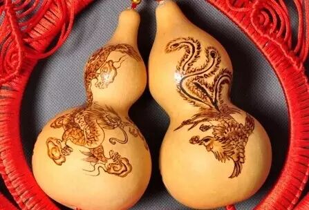 葫芦的枝"蔓"与万谐音,每个成熟的葫芦里葫芦籽众多,汉族就联想到“子孙万代,繁茂吉祥”;葫芦谐音"护禄""福禄",加之其本身形态各异,造型优美,无须人工雕琢就会给人以喜气祥和的美感,古人认为它可以驱灾辟邪,祈求幸福,使子孙人丁兴旺。