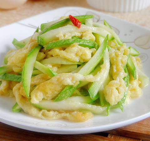 具体做法:先将西葫芦洗净,切成均匀的薄片;然后切成均匀的丝状;鸡蛋磕入碗中,调入少许食盐和料酒搅拌均匀,入油锅炒成碎蛋花,盛出备用;锅中余油加热,倒入西葫芦丝翻炒1分钟左右;调入1茶勺的食盐,翻炒均匀;倒入事先炒好的鸡蛋;继续翻炒片刻即可出锅。