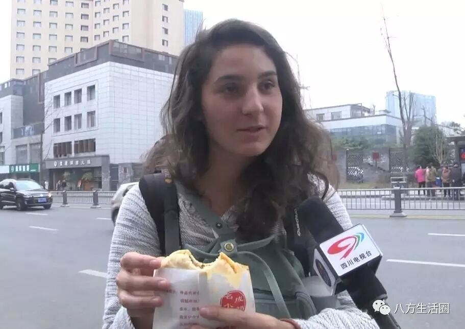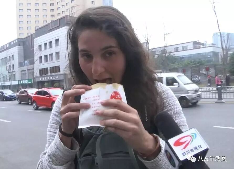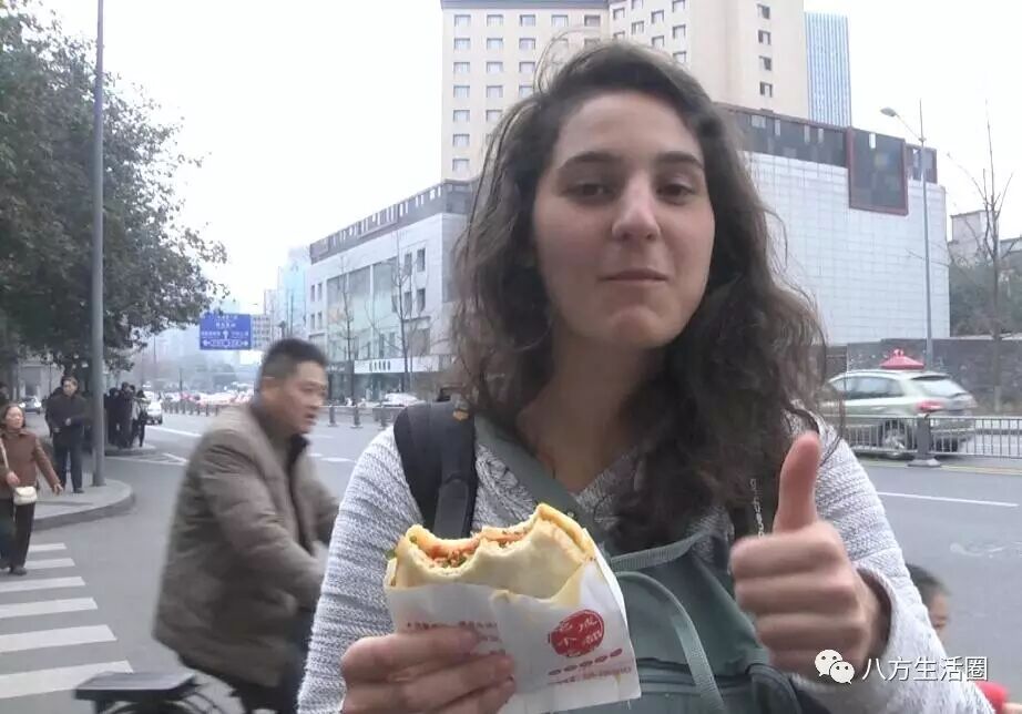 这锅盔好吃,居然连外国美女也喜欢, 您看都竖起大拇指来了