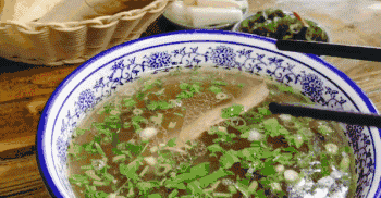 吃一碗酸辣、料香、牛油气搭配均衡的羊肉泡馍,