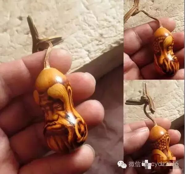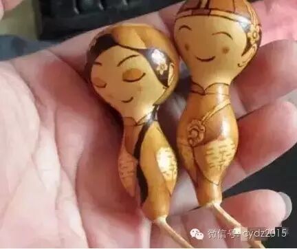 这是一对连枝并蒂手捻葫芦,2个小葫芦共用一个龙头,是天然连在一起的,又是两个人形葫芦,于是想做一对喜人,有喜结连理的含义。