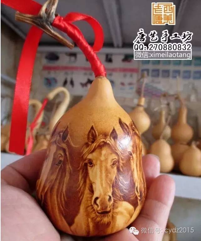 唐京超称,“随形”烙画要根据葫芦的形状来构思图案,加工过程富有挑战性和趣味性。为了提高技艺,他经常把作品发到网上,与烙画行家、艺术爱好者们交流心得。久而久之,他在烙画行里的知名度越来越高,慕名而来的参观者也络绎不绝。