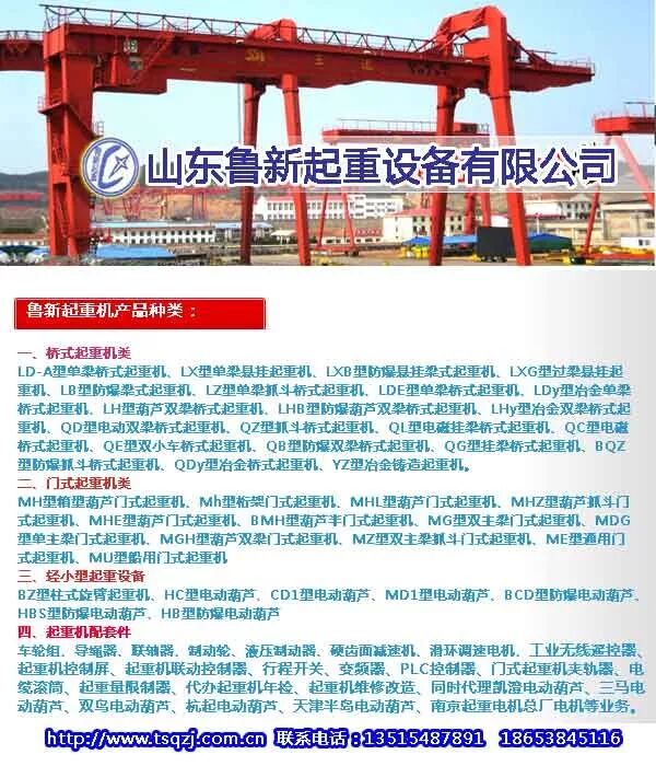 单梁起重机价格、莱芜单梁起重机、山东起重机由山东鲁新起重设备有限公司提供。山东鲁新起重设备有限公司(www.tsqzj.com.cn)实力雄厚,信誉可靠,在山东 泰安 的工程、建筑起重机等行业积累了大批忠诚的客户。公司精益求精的工作态度和不断的完善创新理念将引领山东起重机和您携手步入辉煌,共创美好未来!