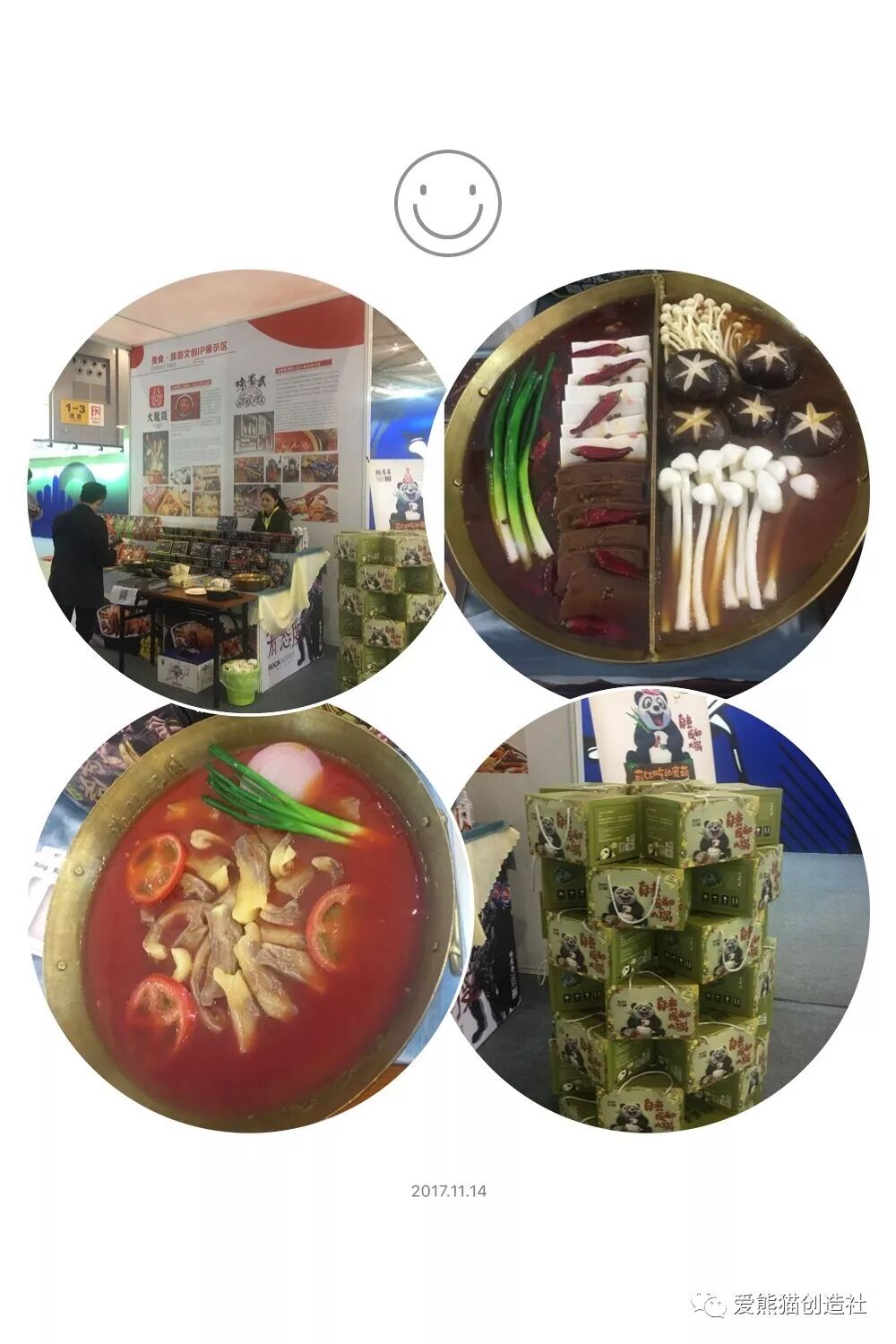 成都宽窄美食展位上的产品设计和酷酷的熊猫
