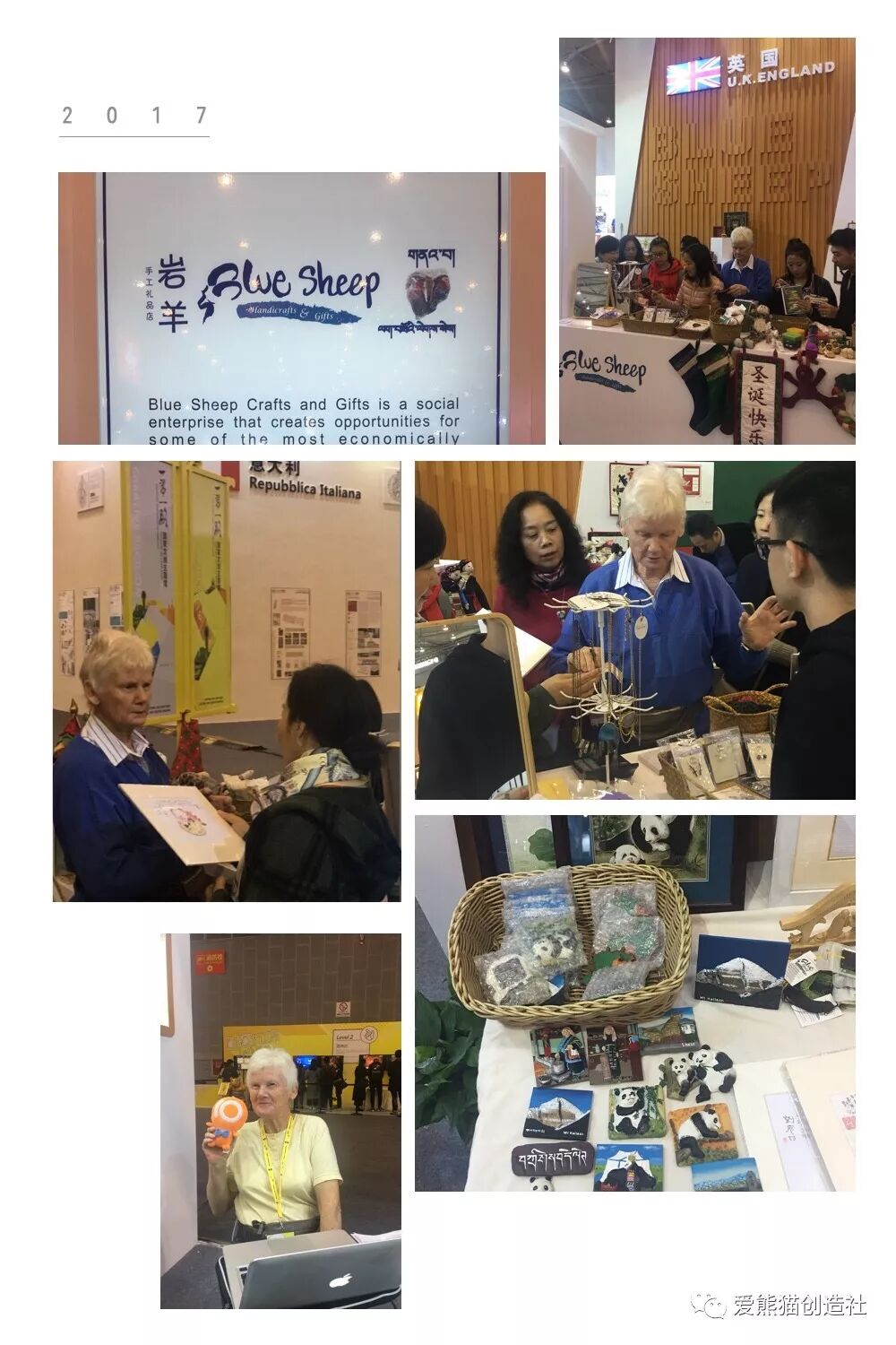 英国瑞秋奶奶和她的岩羊手工礼品店(BLUE SHEEP)。这是一件国际爱心杂货铺,72岁的瑞秋奶奶Rachel Grace Pinniger 来自英国,曾是一名儿科医生,一直辗转于亚洲很多贫困地区,做乡村医生的志愿培训。她在中国教贫穷的家庭和残疾人做手工艺品,再把他们的东西买过来拿到店里出售,许多家庭因此受益,瑞秋在帮助他们的同时也保护了他们的尊严。展会上,他们家的熊猫礼品很不错哦。