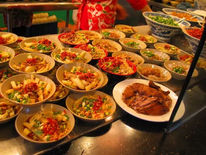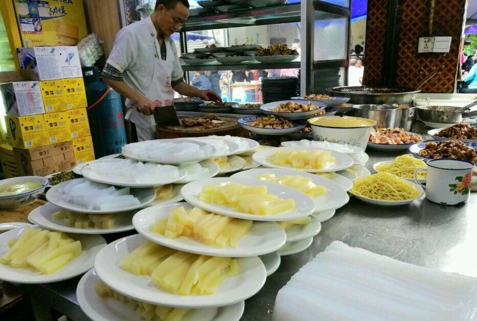 有的是在街上推车单售的,也有在小吃店里合卖的,或穿插在宴席上,或在小餐馆里调剂口味。