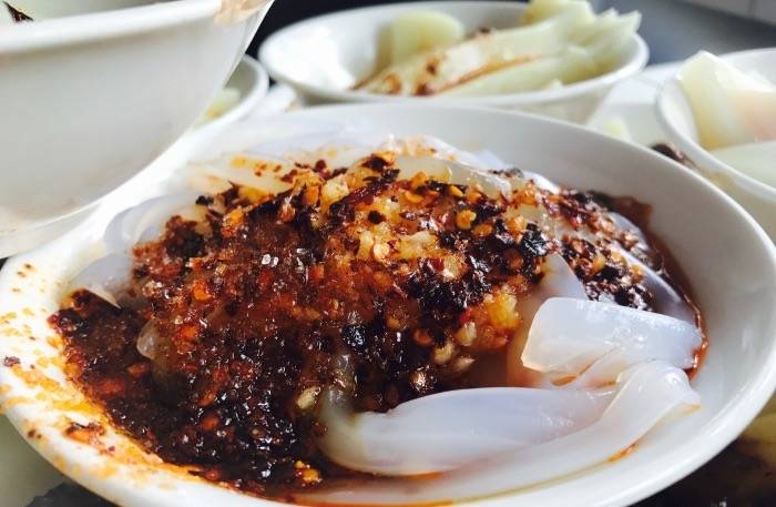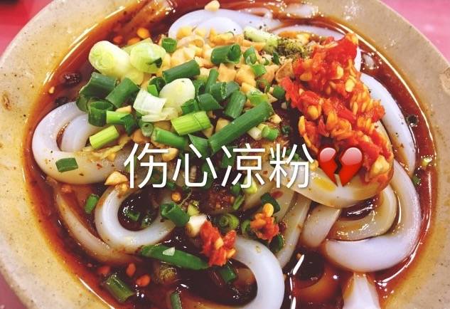 伤心凉粉有三个口味,麻辣、油香和糖醋,很多人专门到这家店来吃凉粉,吃不得辣的小伙伴们吃得眼泪鼻涕跟到淌。