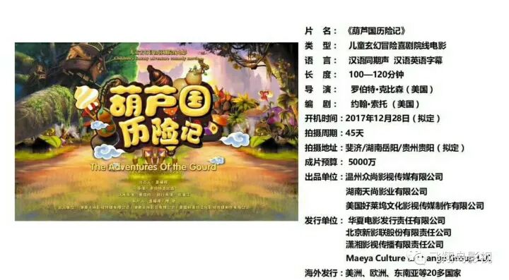 必然飞翔鸟影视推广一部中外合作的真人动画题材的《葫芦国历险记》正在众筹期,众筹起步1万起,现今还在面向全民众筹,众筹客户将享有票房盈利的百分之百共享分成。电影素材如下: