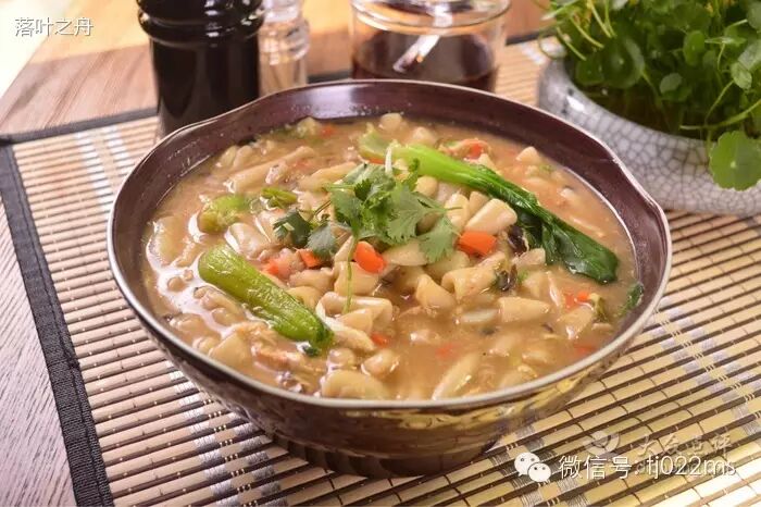 类似于猫耳朵的外形,在汤中撒些香油,飞个蛋花,热乎乎的一大碗,面筋韧可口,汤味浓鲜香,一点都不油腻。