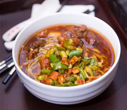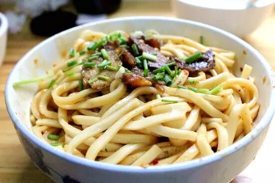 陕西哨子面是必推得美食。臊子面制作时以肉丁“臊子”加土豆丁、红萝卜丁、黄豆、木耳等烹制成为卤汤,淋在面条上而得名。面条入口,辣油的香味和面条的爽滑,会立即从齿间蔓延到整个口腔,深入到胃里。