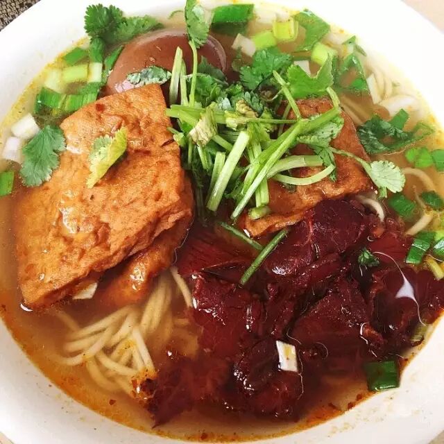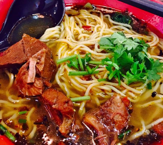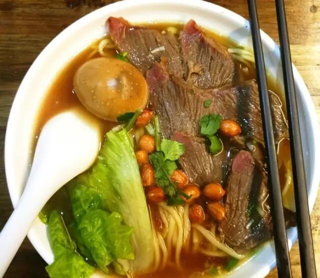 有至少20年历史的老字号苍蝇馆子,店面没什么装修布置、很简陋,甚至可以说是很破! 他家的牛肉面很好吃,牛肉卤味较重,汤头较浑杂质很多,配上红红的辣油,会稍微有点卡嗓子,但对于重口味而言是各种咸辣过瘾。