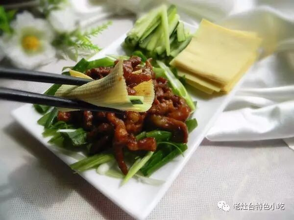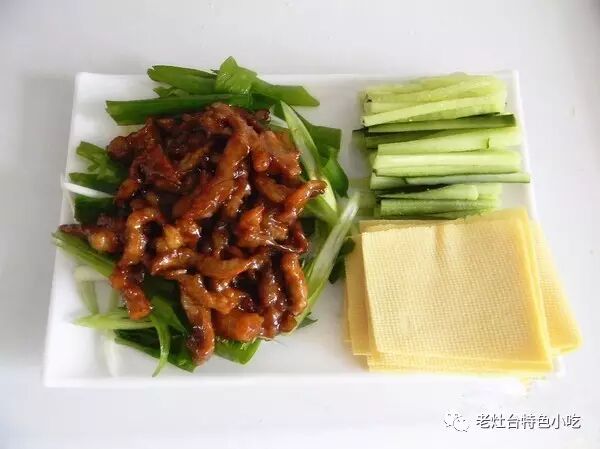 13、把肉丝倒在摆好的葱上,卷着吃吧,非常好吃哦!![]()
