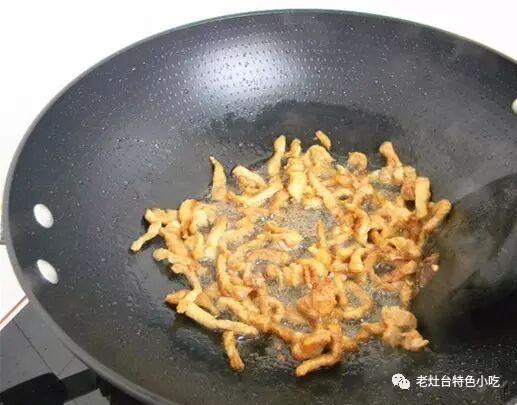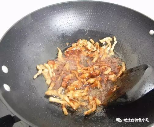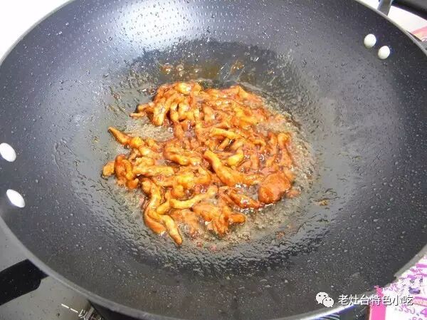 10、把肉丝炒变色,水分炒干;![]()