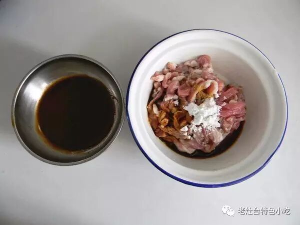2、肉丝里放入生抽,料酒,胡椒粉和淀粉,同时备好甜面酱;![]()