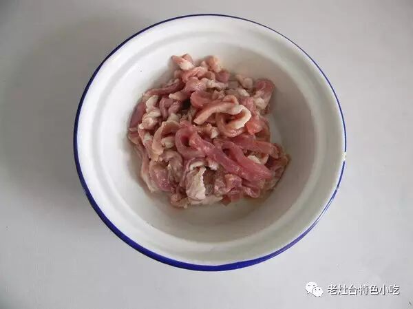 1、猪里脊肉切成丝;![]()