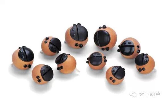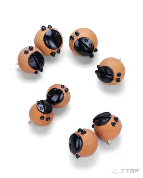 此八支葫芦,大小不一,其上为王世襄先生火绘的蜘蛛、蚂蚱、蝴蝶、蜜蜂等动物,拟没骨之意味,有形神兼备惟妙惟肖的整体效果。葫芦肚圆浑,漆黄色。每支葫芦图画各异,饶有情趣。底刻“祥”字,为周春泉先生制哨。