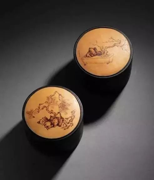 王世襄火绘葫芦片嵌镶红木圆盒成对
