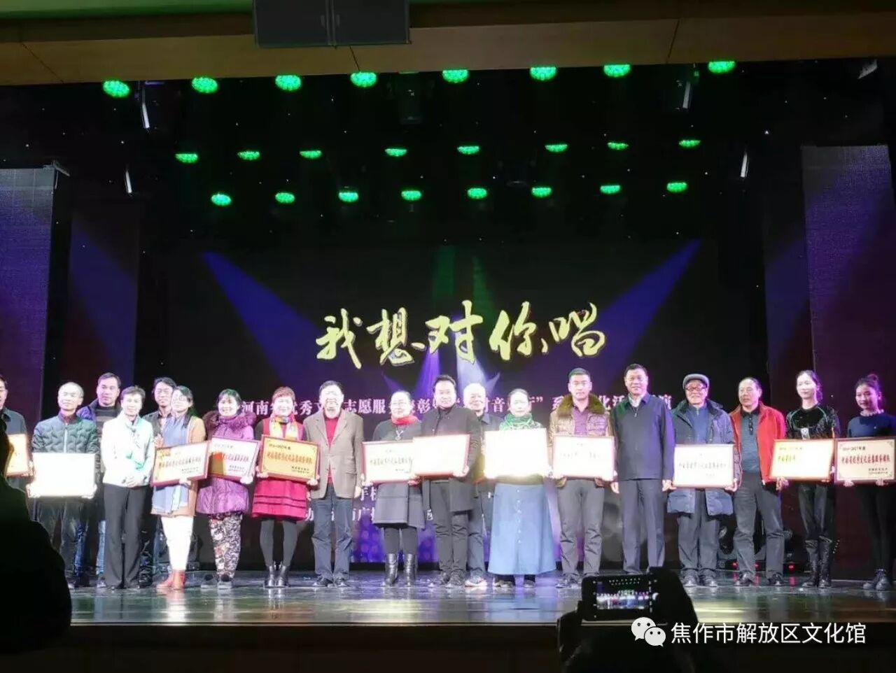 12月8日,由省文化厅举办的2016-2017年度河南省优秀文化志愿服务项目优秀文化志愿服务团队优秀文化志愿服务个人表彰会上,解放区老年大学爱心连线文化志愿者服务队荣获“2016-2017年度河南省优秀文化志愿服务团队”称号。