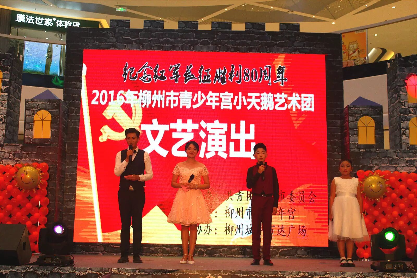 10月28日晚,由柳州市委员会主办、柳州市青少年宫承办、柳州城中万达广场协办的“纪念红军长征胜利80周年--2016年柳州市青少年宫‘小天鹅’艺术团文艺演出”在城中万达广场举行。