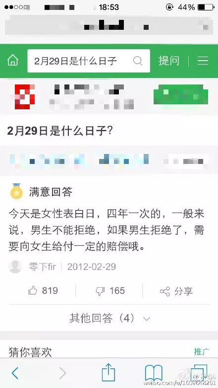 同时,宁泽涛还截图一张,图上写2月29日是女性表白日,四年一次,男生不能拒绝,否则要给女生赔偿。