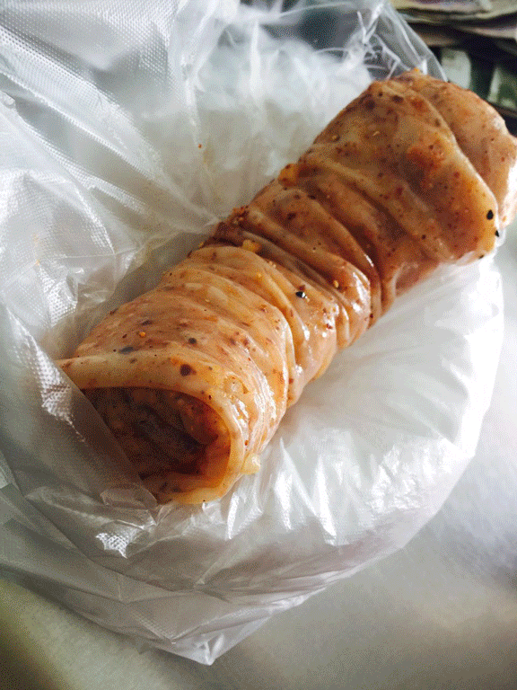 颜值:在这个看脸的时代,面皮也需要颜值,红岭面皮长得白白嫩嫩,看得出是自己家做的面皮而不是批发,从外面就能透出里面的菜色,让人垂涎欲滴,料汁加上黄瓜出的水在来根烤肠一起卷在里面,我的口水已经决堤。